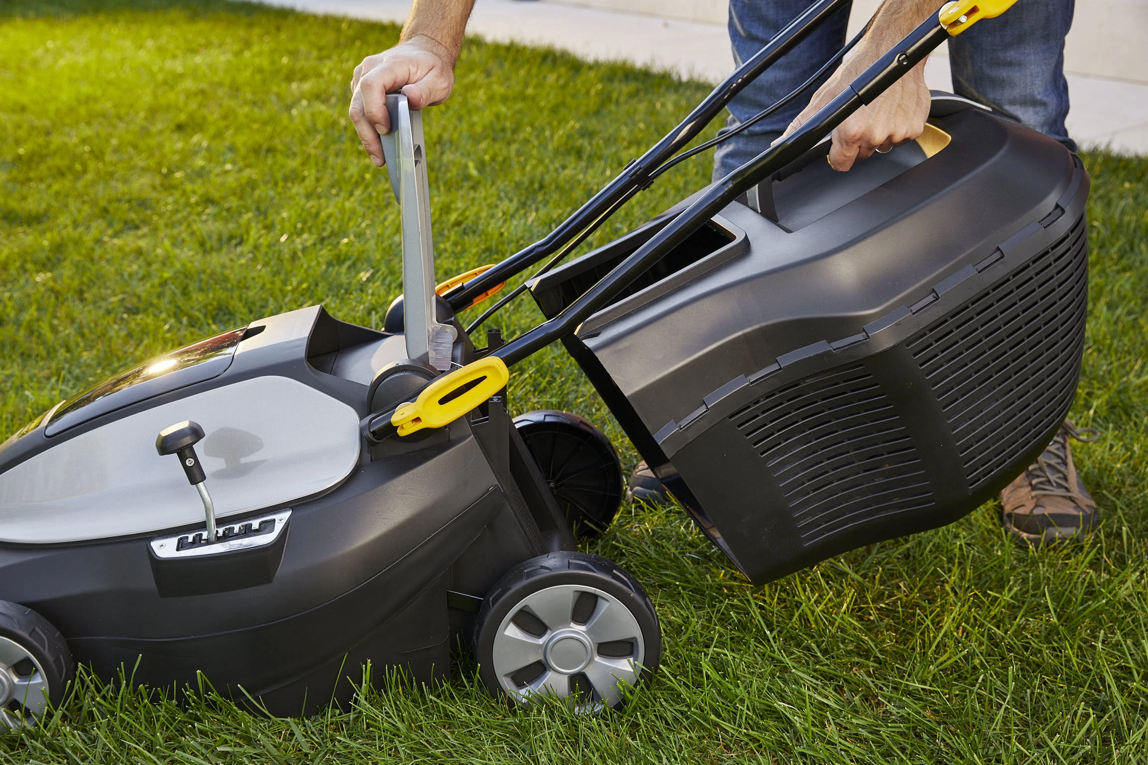 - Zentrale Schnitthöhenverstellung mit 6 Positionen (25 – 75 mm)