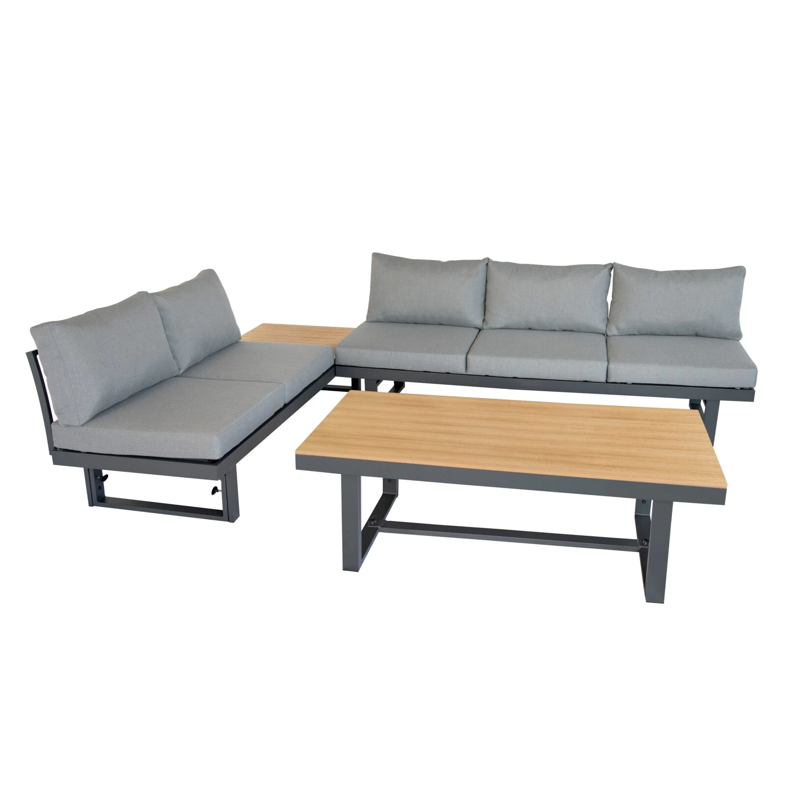 – Abnehmbare Seitenablagen mit Polywoodoberfläche für die Sofas