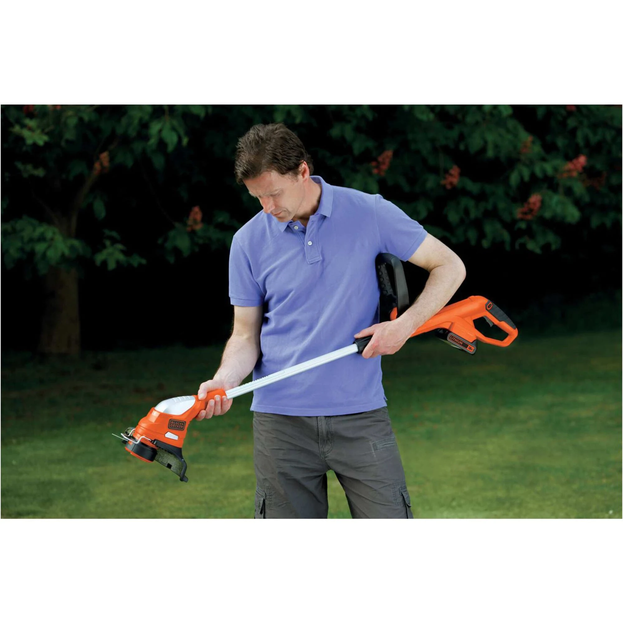Der BLACK+DECKER Akku-Rasentrimmer GLC1823L20 leistet dank E-Drive Technologie einen schnellen Arbeitsfortschritt bei hohem Drehmoment und konstanter Drehzahl. Der leistungsstarke 2,0Ah Akku mit 18 Volt schafft etwa 1.950m pro Ladung. Dank Li-Ionen Technologie besteht keine Gefahr der Selbstentladung und der Akku ist immer einsatzbereit. Mit seiner Schnittbreite von 23cm eignet sich der Akku-Rasentrimmer GLC1823L20 ideal für mittelgroße Rasenflächen. Er lässt sich schnell und einfach von Trimmen auf Kantenschneiden umstellen. Dank automatischer Einfaden-Verlängerung und verstellbarem Teleskopstiel für die individuelle Einstellung ist der Akku-Rasentrimmer GLC1823L20 ein komfortabler Begleiter.