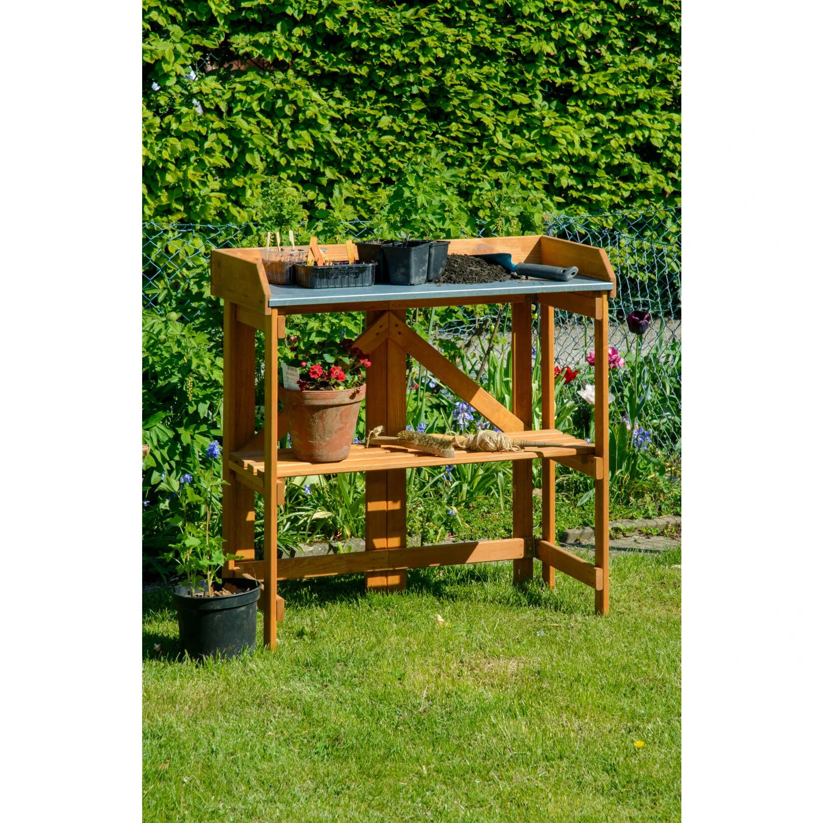 Die Arbeitsfläche hat eine angenehme Höhe von ca. 81 cm. Der Pflanztisch ist zusammenklappbar und somit besonders platzsparend zu verstauen.