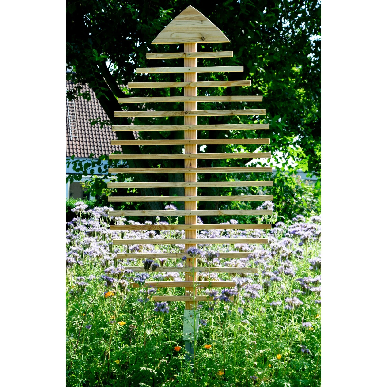 - Die natürliche Holzfarbe des Rankblattes wird mit der Zeit durch Witterungseinflüsse ein elegantes Silbergrau annehmen