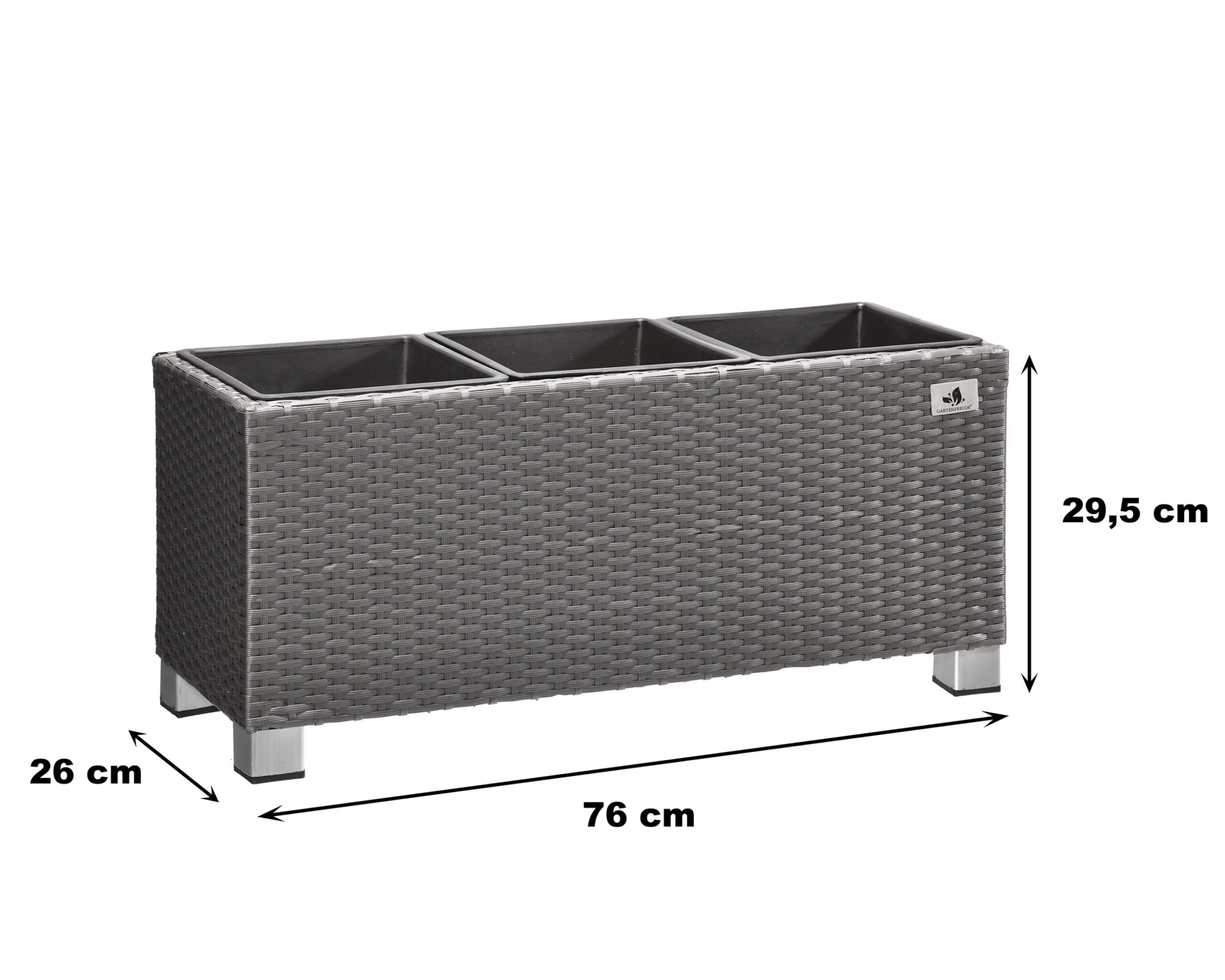 Raumteiler Pflanzkübel Polyrattan 76x26x73cm, 3x Kunststoff-Einsätze