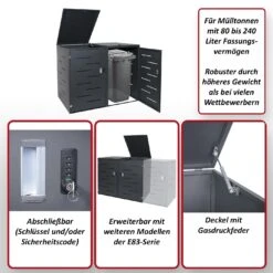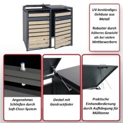2er Mülltonnenverkleidung MCW-J81, Mülltonnenbox, Erweiterbar, Metall 50kg, Anthrazit ~ Gold