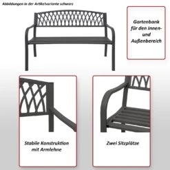 Gartenbank MCW-F45, Bank Parkbank Sitzbank, 2-Sitzer Pulverbeschichteter Stahl ~ Schwarz