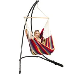 Freistehendes Stahl-Hängestuhlgestell 210cm Inkl. XXL Hängesessel Aus Baumwolle Mit Swivel 185x130cm
