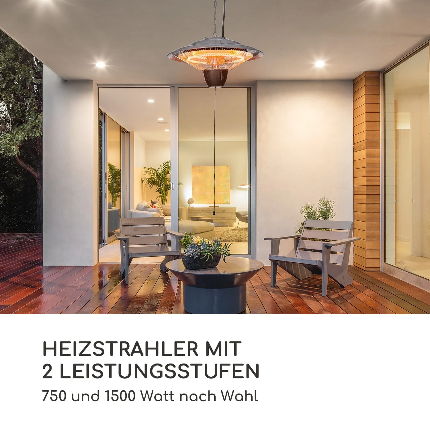 - Leistungsstark: Infrarot-Heizstrahler mit 2 Leistungsstufen – 750 und 1500 Watt