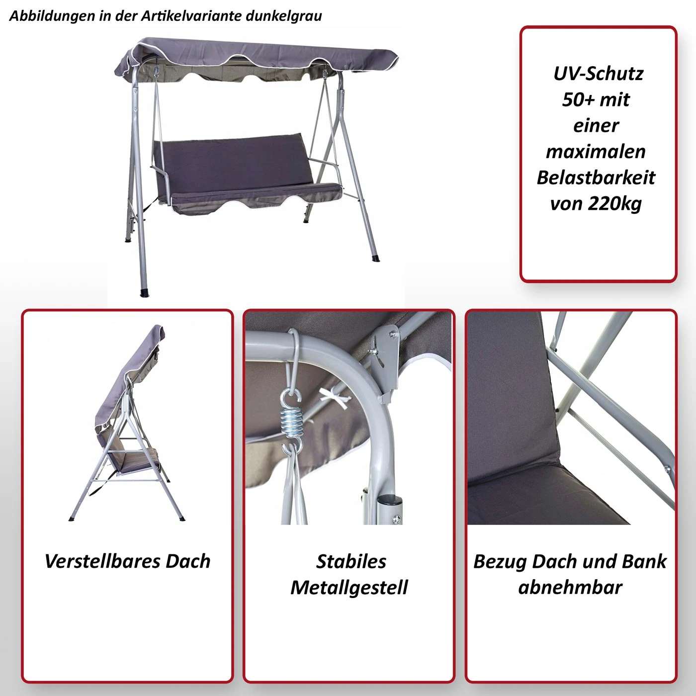 – Maximale Belastbarkeit: 220 kg