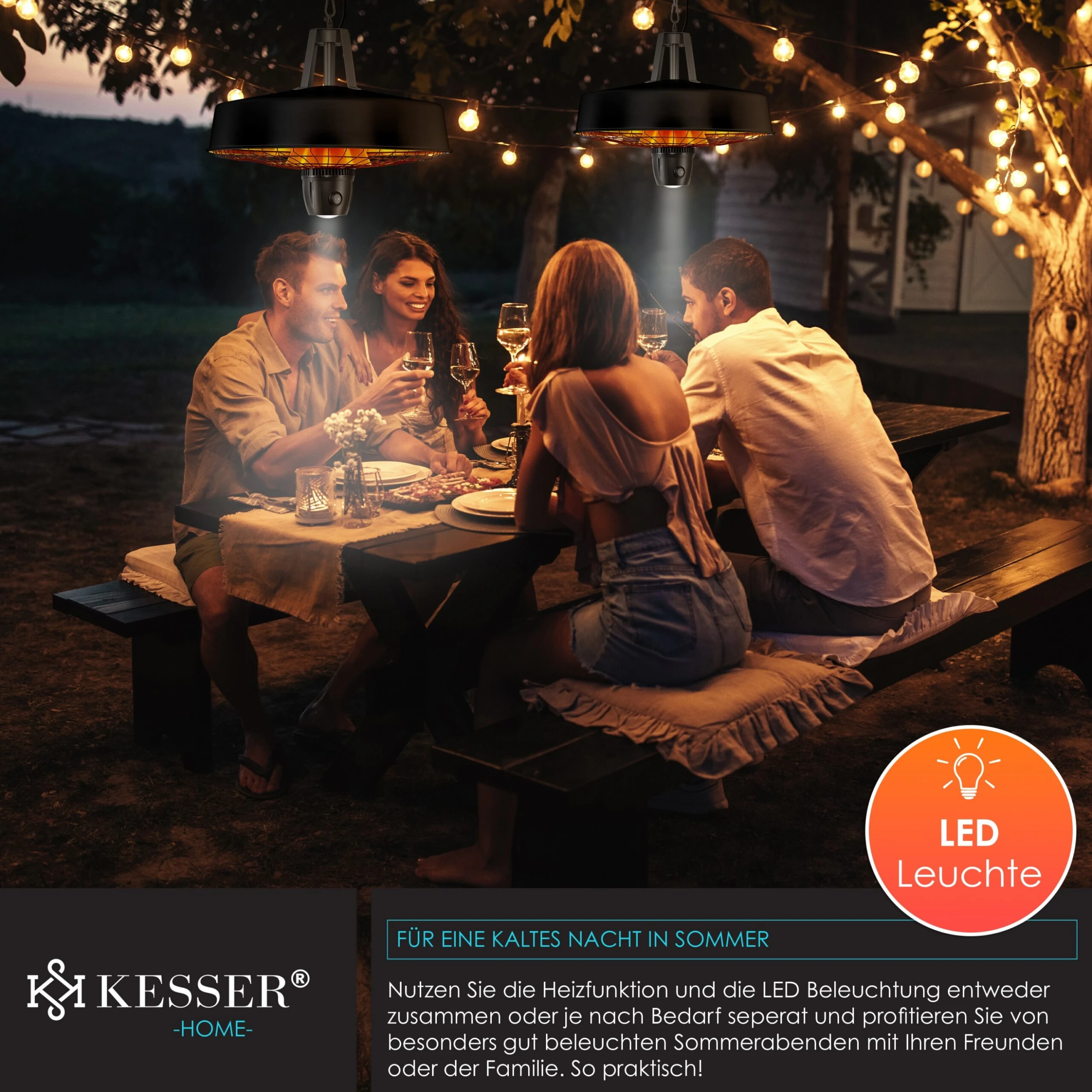 KESSER Deckenheizstrahler 2500W mit Fernbedienung, 3 Heizstufen für wohlige Wärme, Spritwassergeschützt, robuster Aluminiumschirm, geruchs-, rauch- und lautstärkefrei heizen, mit LED-Funktion