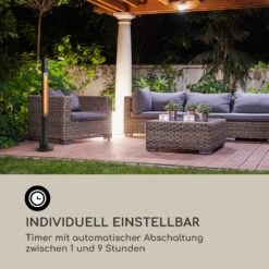 Die Heizung garantiert Ihnen einen wasserdichten Schutz vor Regen, denn sie ist korrosionsbeständig, strahlwassergeschützt dank IP55 und bekommt nochmal einen zusätzlichen Schutz durch das mitgelieferte Wettercover. Der Bedienkomfort wird neben der Fernbedienung durch eine Smart Home – App ergänzt, dank der Sie die Betriebsparameter wie eingestellte Temperatur, Leistung oder Restzeit des Timers verfolgen und einstellen können. Einfach App runterladen, Smartphone mit dem Heizofen verbinden und entspannt heizen.