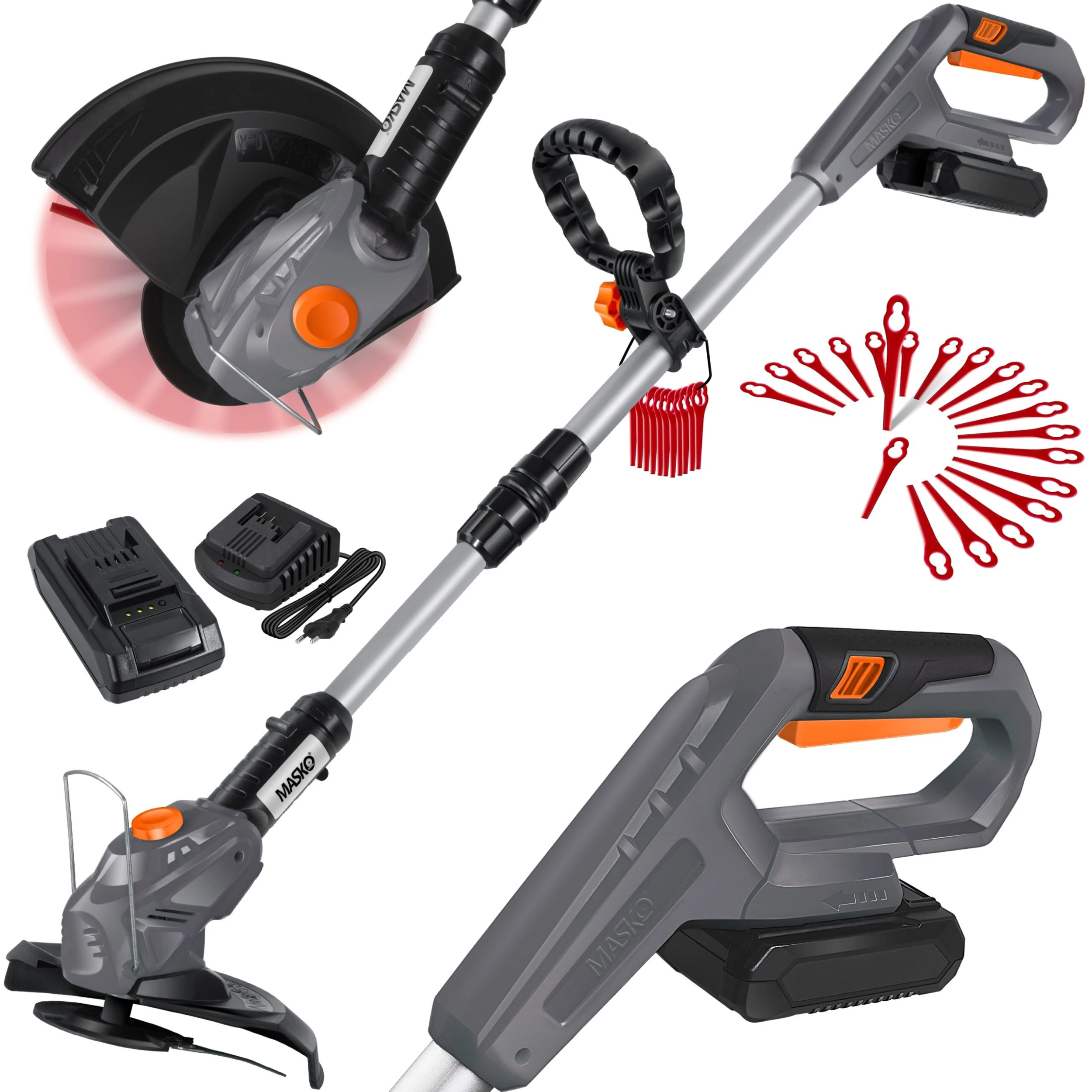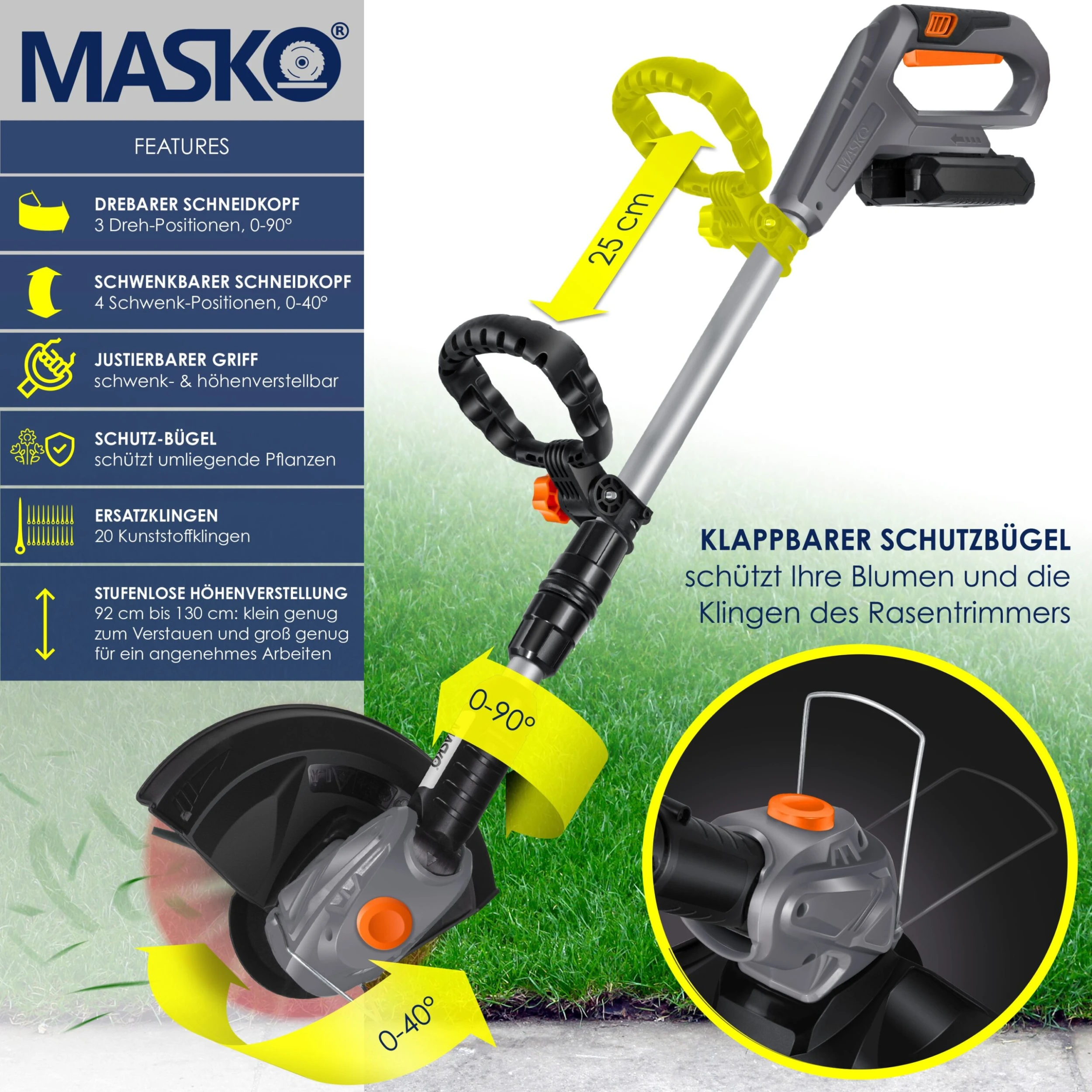 MASKO Rasentrimmer – 20 Volt, ergonomisches Arbeiten, stufenlose Höhenverstellung, Akku mit Ladeanzeige, flexibler Schneidkopf, schwenkbarer Griff und hochwertige Kunststoffklingen