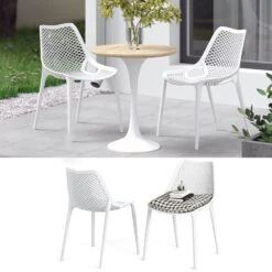 • Der Gartenstuhl ist aus witterungsbeständigem und wasserresistentem Kunststoff gefertigt.