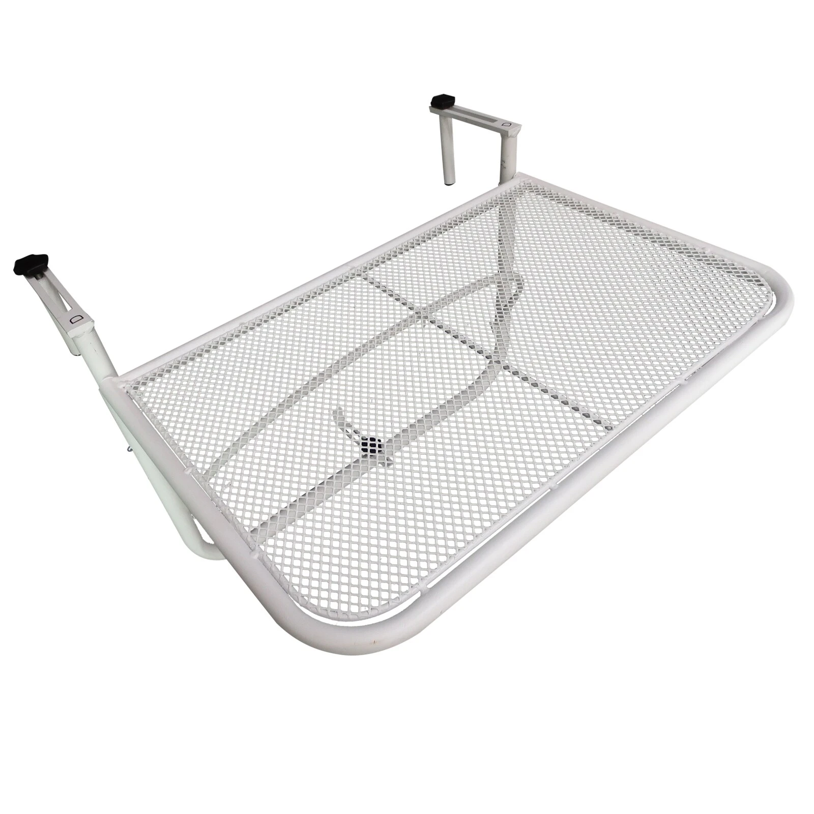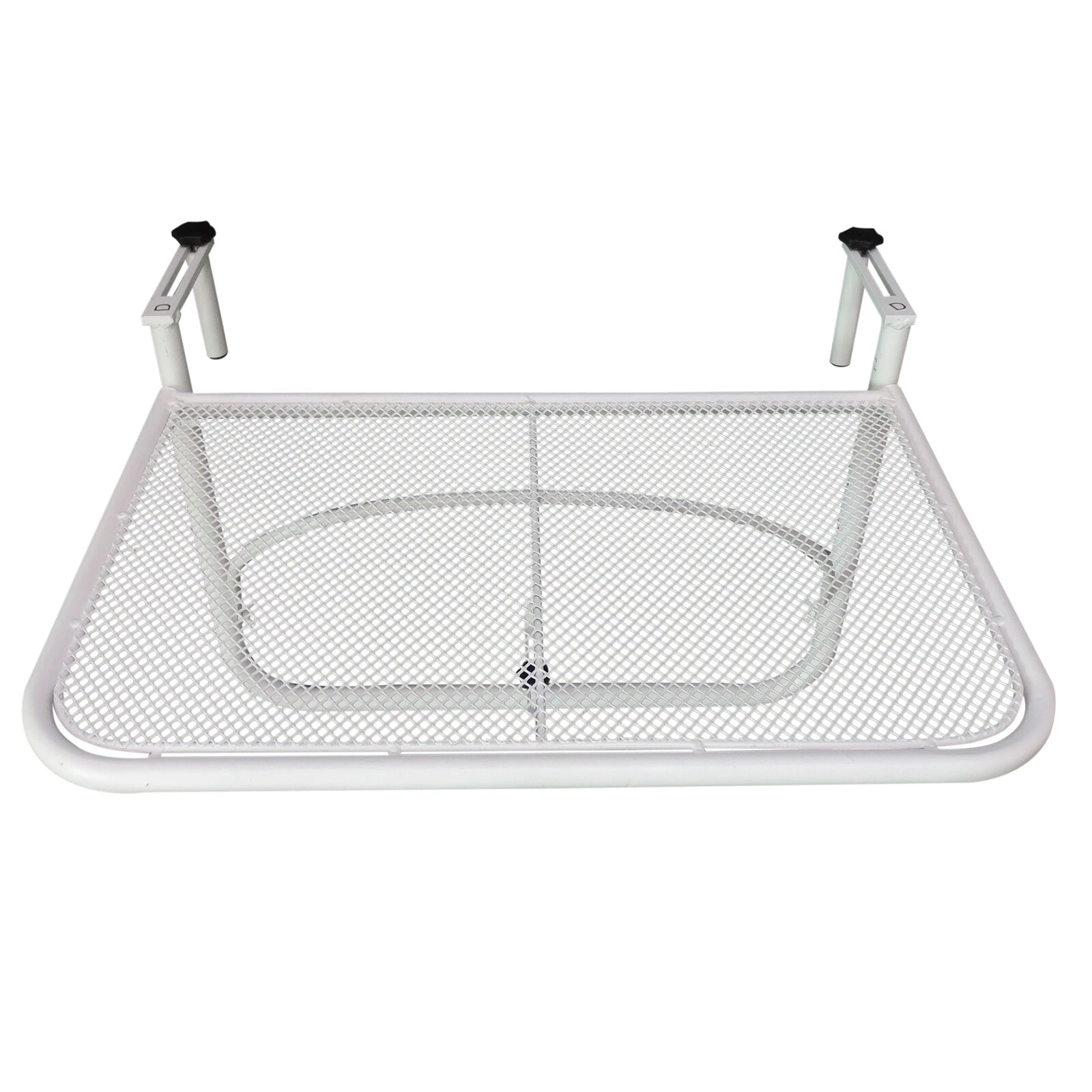 - Wertig und modern: Der Balkontisch mit vier abgerundeten Ecken verfügt über ein robustes, pulverbeschichtetes Metallgestell. Die Tischplatte ist in Maschen-Optik gefertigt.