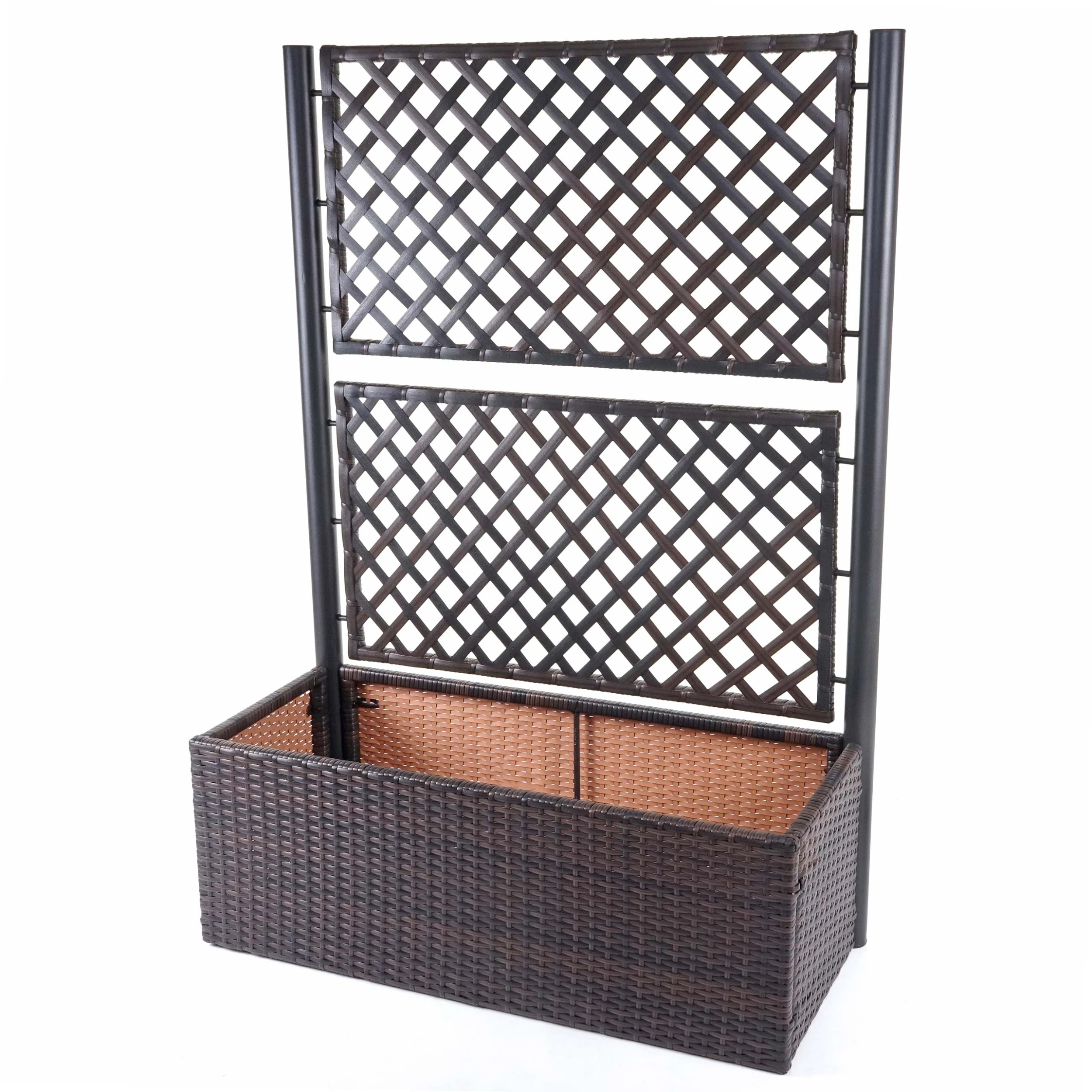 – Durch das integrierte Gitter eigent sich dieser Blumenkasten herrvorragend zur Bepflanzung von Kletterpflanzen, wie Rosen, Efeu oder Weinreben- so wird dieser Kübel zu einem natürlichen Raumteiler und dient gleichzeitig als Sichtschutz oder Abgrenzung.